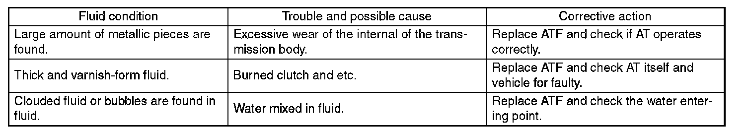 When replacing ATF, check the inside condition of the transmission body by inspecting the drained ATF.