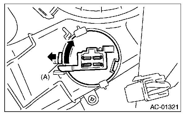 3. Remove the lock (A) and rotate to the right, and remove the blower resistor.