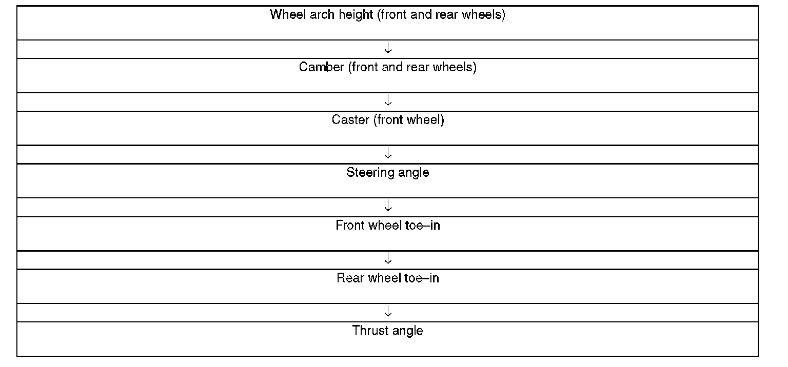 Check, adjust and measure the wheel alignment in accordance with the procedures indicated in the figure.