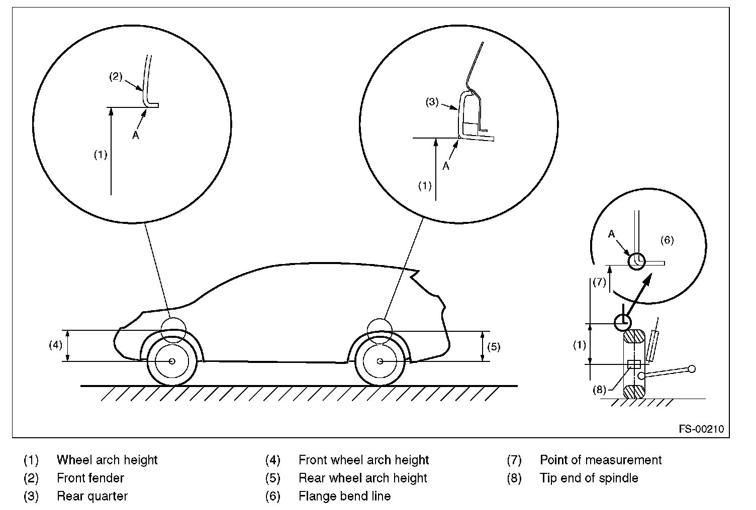2. Place a mark at the center of both left and right tires, and measure distance A between the marks.