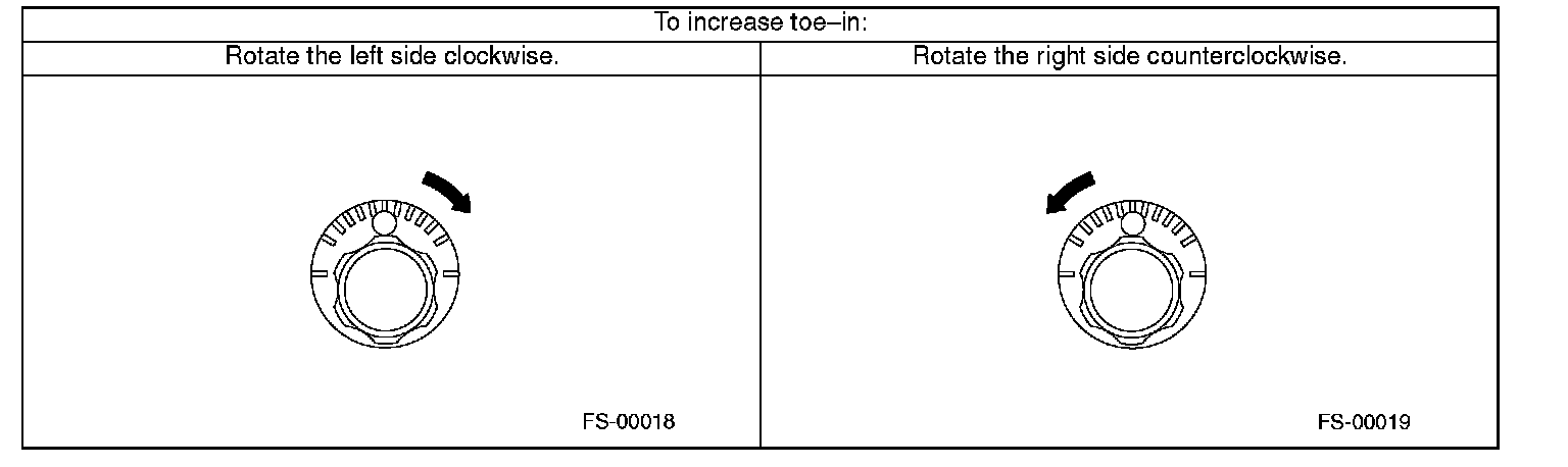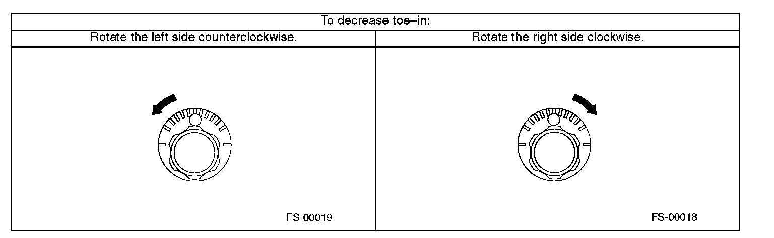 2. When one rear wheel is adjusted in a toe-in direction, adjust the other rear wheel equally in toe-out direction, in order to make the thrust angle adjustment.