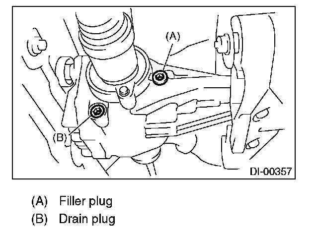 4. Fill the differential carrier with gear oil to the bottom of filler plug.