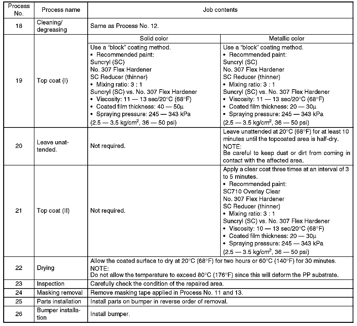 REPAIR INSTRUCTIONS FOR COLORED PP BUMPER