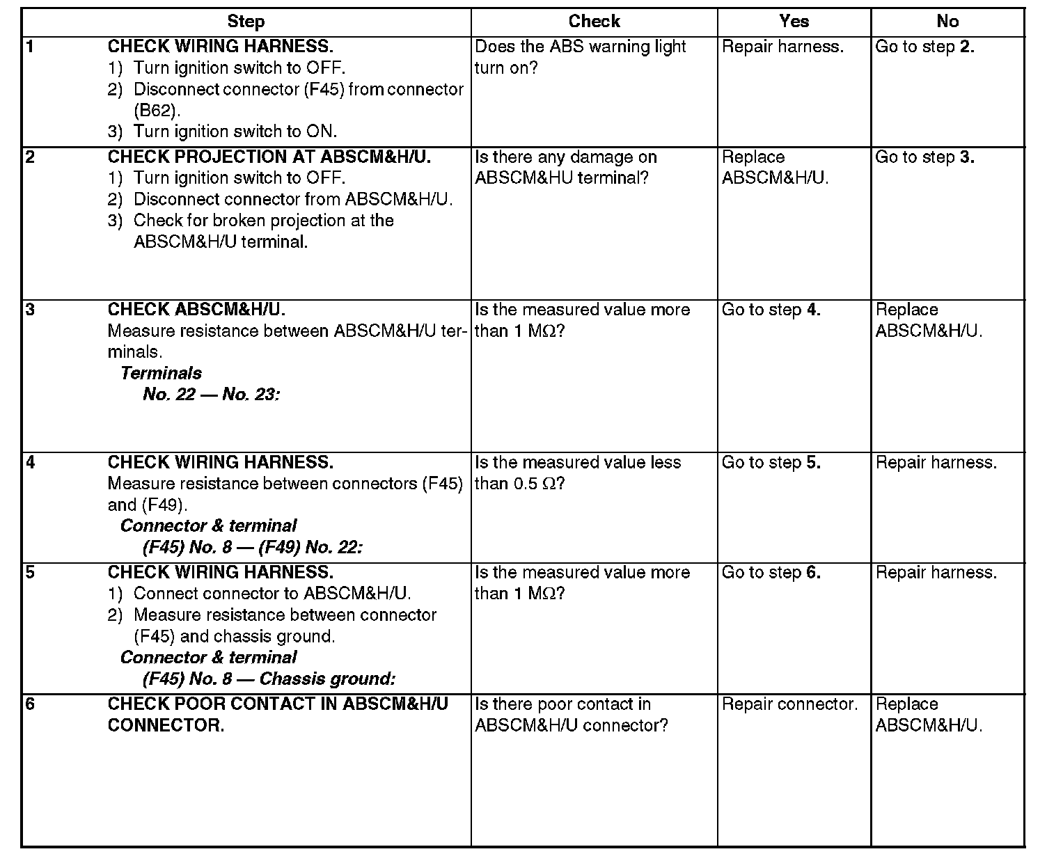 NOTE: When the ABS warning light is OFF and "NO TROUBLE CODE" is displayed on the select monitor, the system is in normal condition.