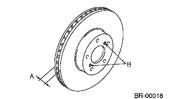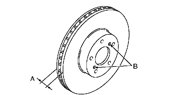 NOTE: If disc rotor seizes up within the hub, drive disc rotor out by installing an 8-mm bolt in holes B on the rotor.