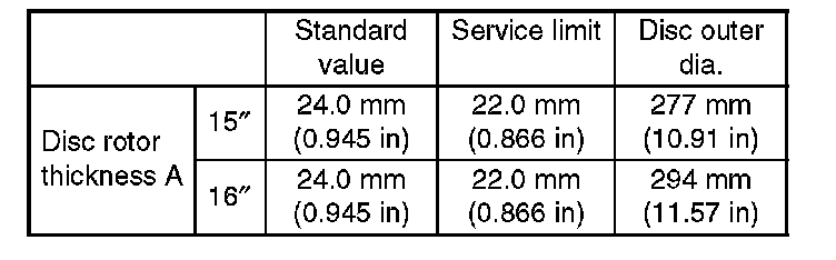 Disc rotor runout limit: 0.075 mm (0.0030 inch)