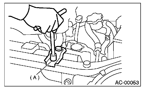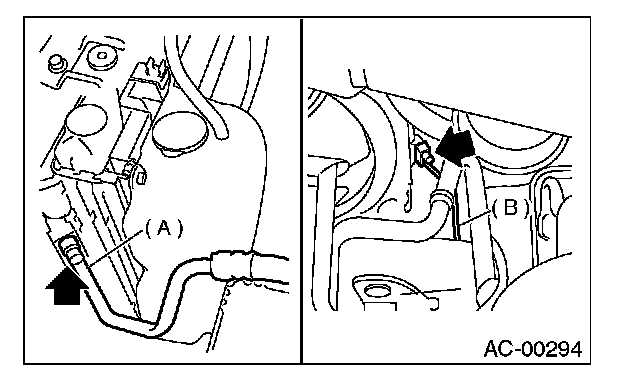 4. Disconnect high-pressure hose (A) and low pressure hose (B) from condenser.