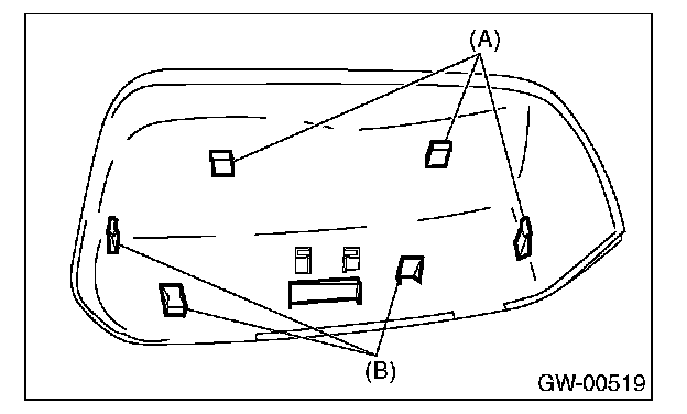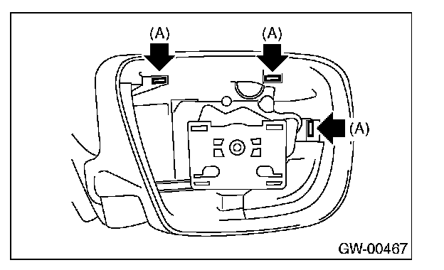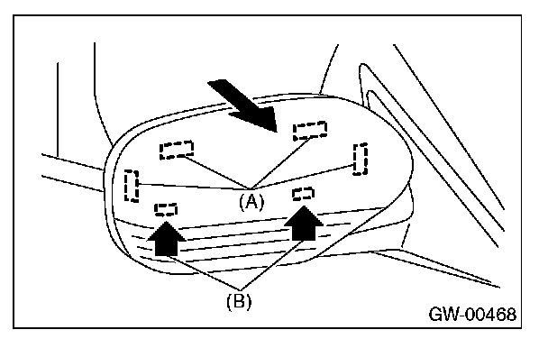 2. Press-in the upper side clips (A) from inside of outer mirror.