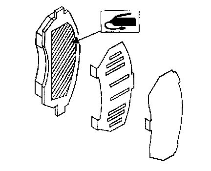 2) Apply thin coat of Molykote AS880N (Part No. K0777YA010) to the frictional portion between inner pad and rubber coated shim.