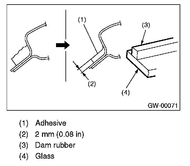 - For minimum drying time and vehicle standing time before driving after bonding, follow instructions or instruction manual from the adhesive manufacturer.
