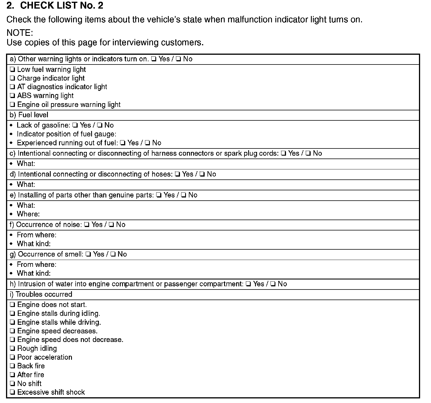 Check List No. 2: