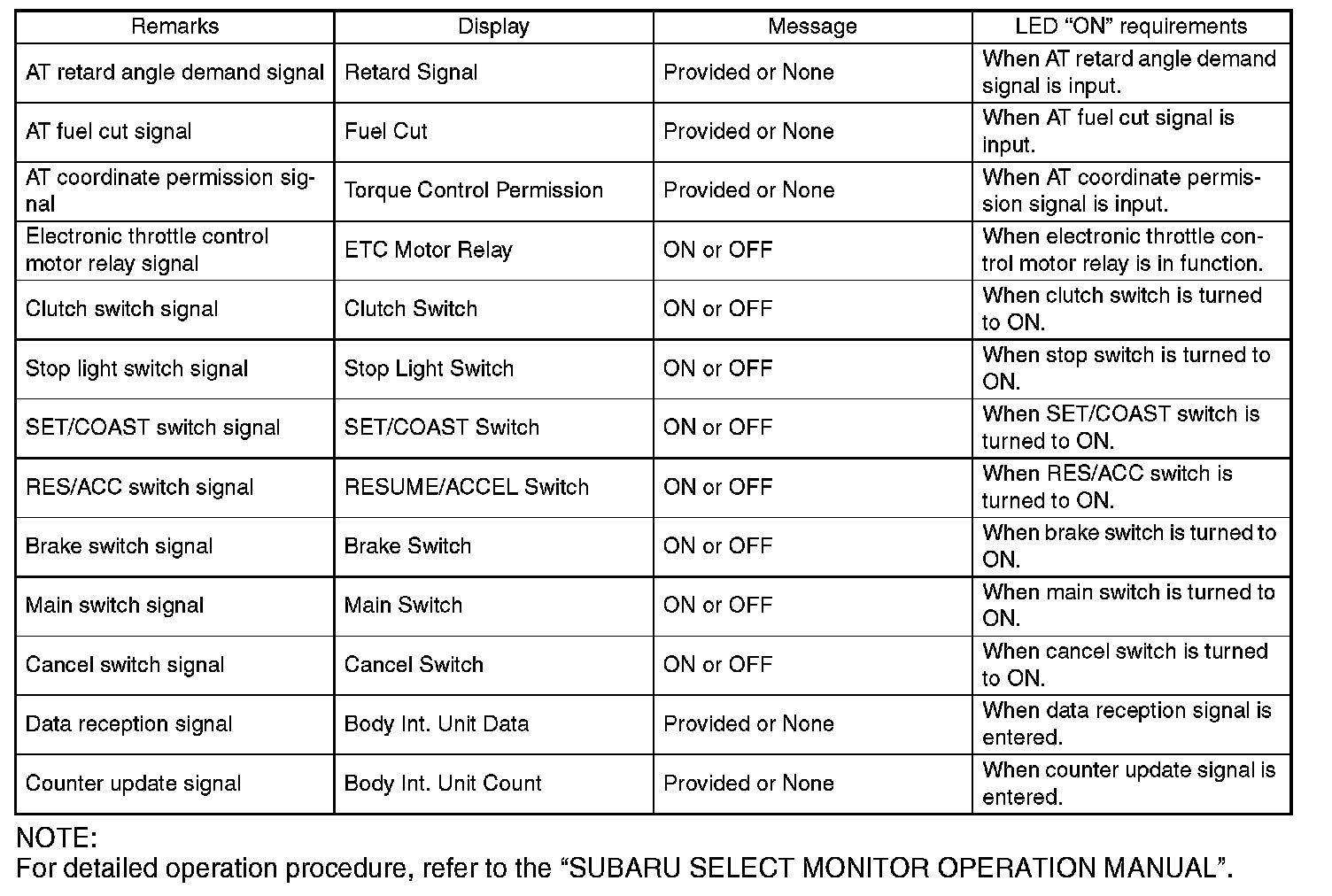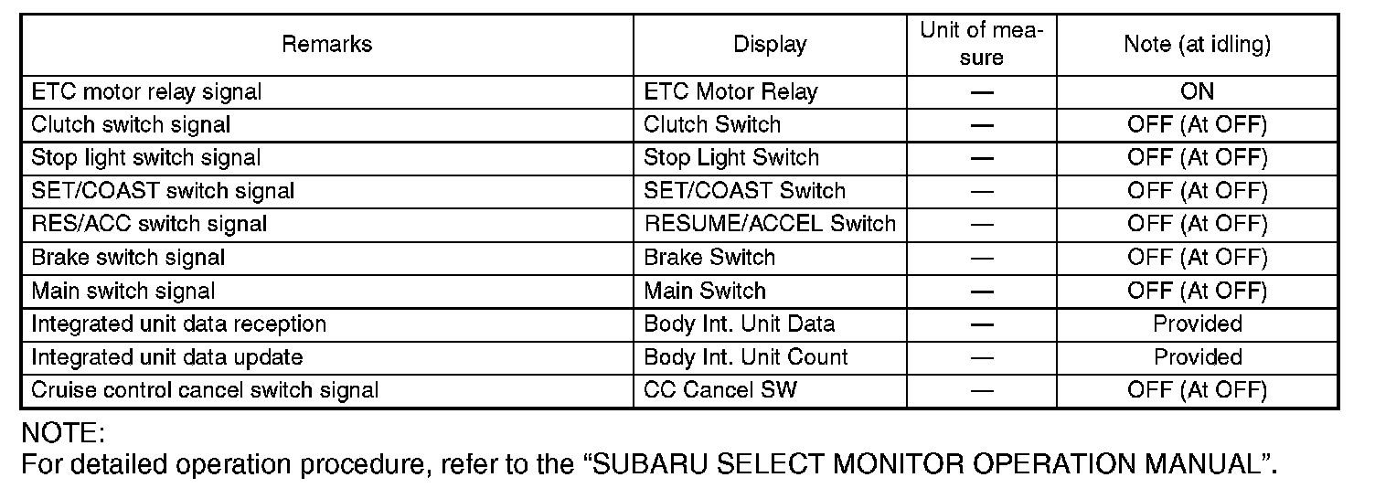 NOTE: For detailed operation procedure, refer to the "SUBARU SELECT MONITOR OPERATION MANUAL".