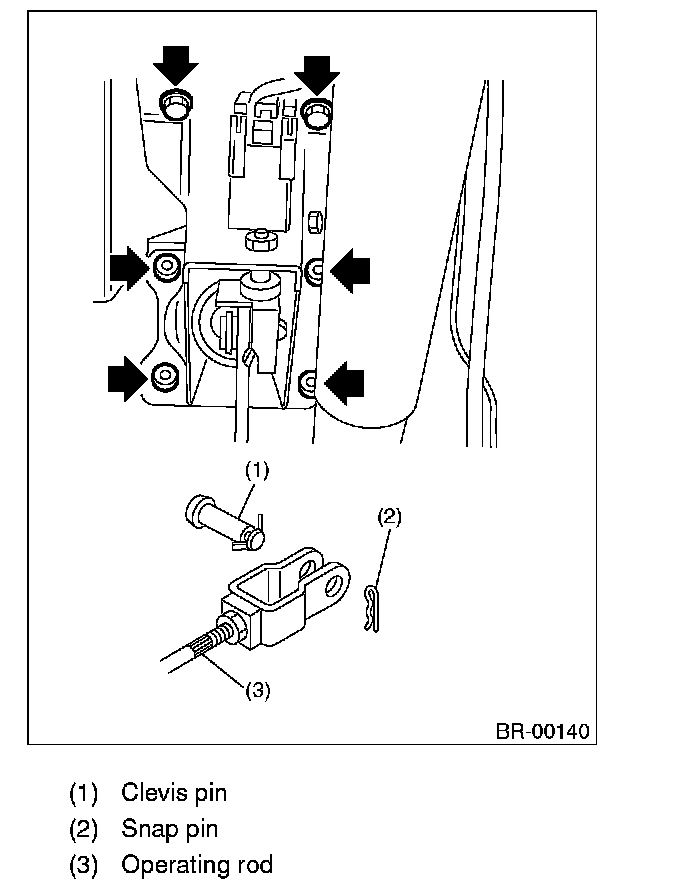 3. Remove the clevis pin which secures the brake pedal to brake booster operating rod. Also disconnect the stop light switch connector.