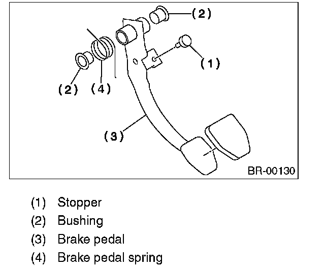 3. Align bores of the pedal bracket, clutch pedal and brake pedal, attach the brake pedal return spring, and then install the pedal bolt.
