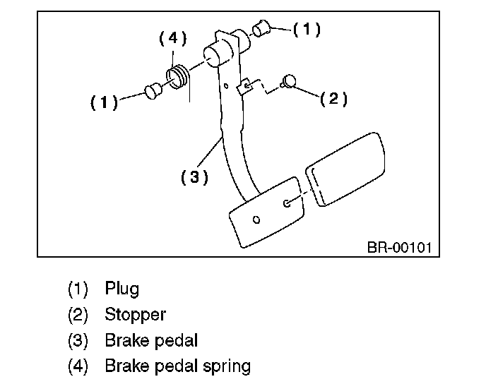 4. Remove the four bolts and four nuts which secure the brake pedal to pedal.