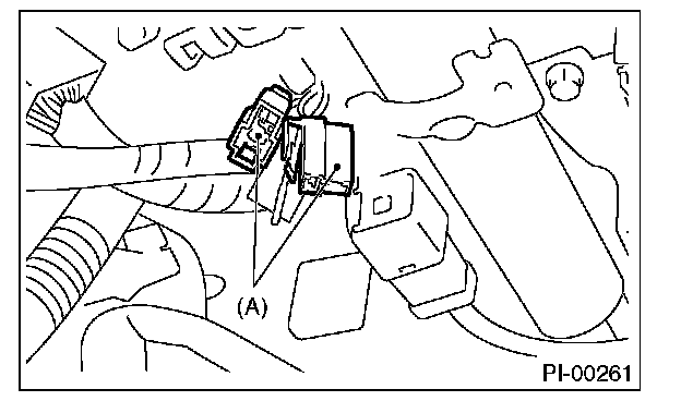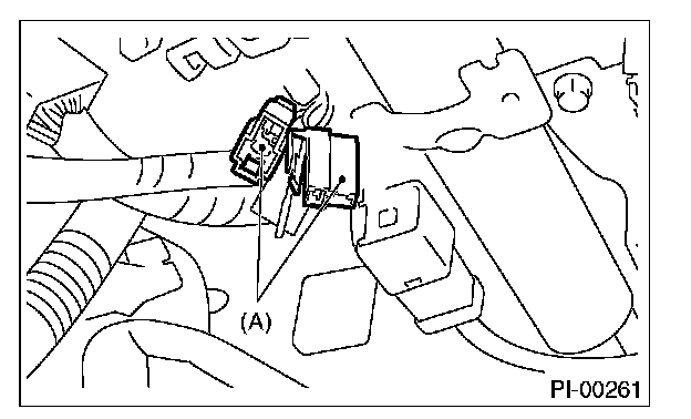 6. Connect the test mode connector (A) at the lower portion of instrument panel (on driver's side).
