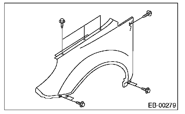 2. Install with attention to make uniform clearance between front fender panel and front hood panel. For the dimension of clearance, refer to "SPECIFICATION" in "General Description".