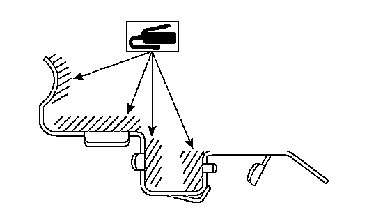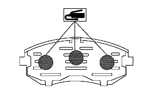 3. Apply a thin coat of Molykote AS880N (Part No. K0779YA010) to the three contact surfaces between inner shim and outer shim of outer pads.