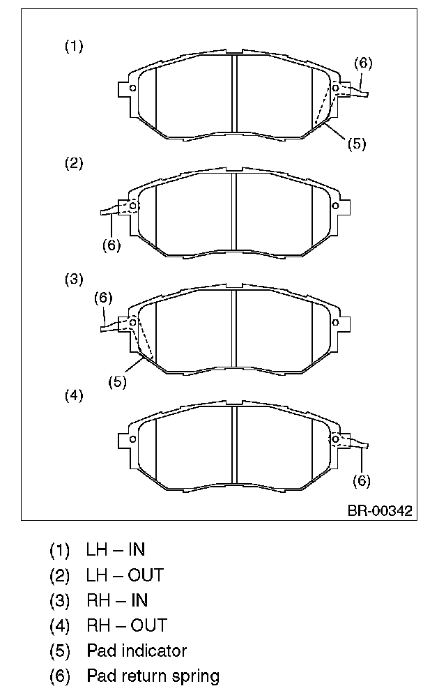 ^ If the pad return spring is deformed or damaged, replace the brake pad.