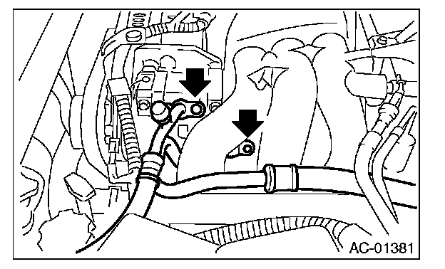 7. Remove the bolt and remove the low-pressure hose and high-pressure hose.