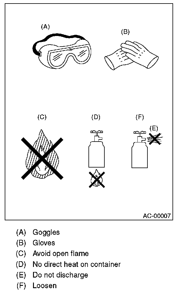 - When the engine is running, do not open the high-pressure valve of the manifold gauge. High-pressure gas can back-flow resulting in an explosion of the can.