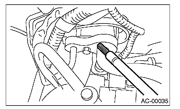 7. Check the compressor shaft seal at the area near the center of compressor clutch pulley.