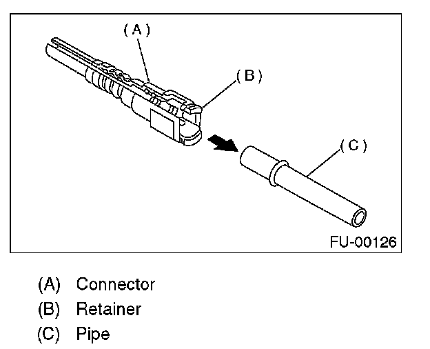 1. Set the new retainer (B) to connector (A).