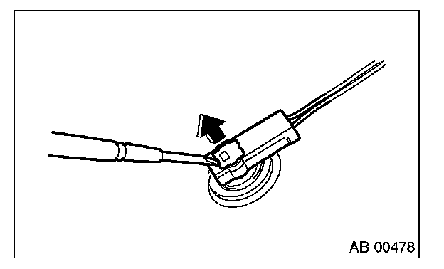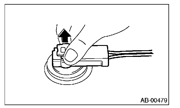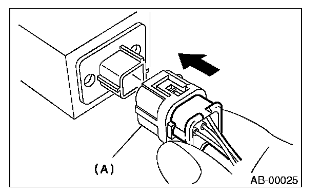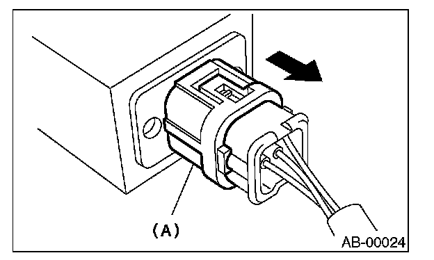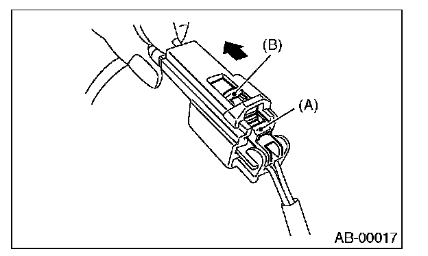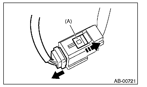 Push lock arm (A), then disconnect the connector.