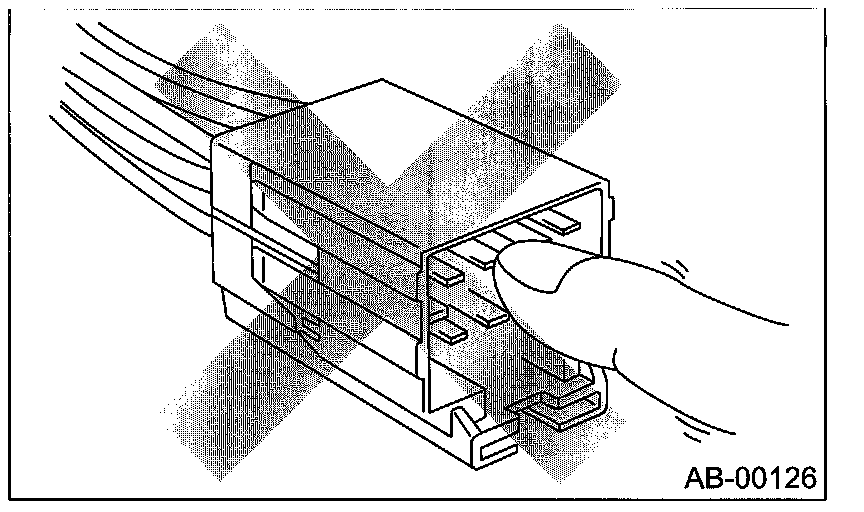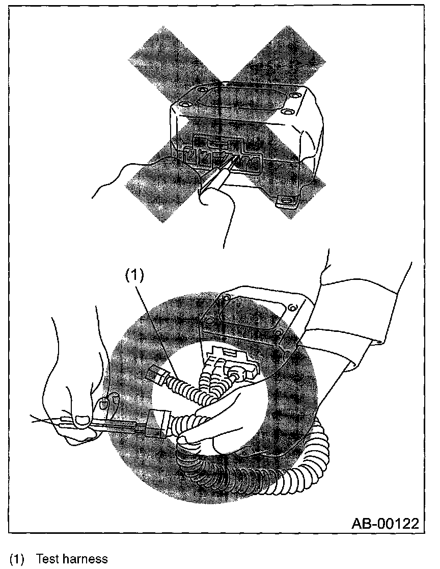 - When checking, use a test harness (1). Damage to connector terminal causes malfunction. Do not directly put the tester probe on airbag connector terminal.