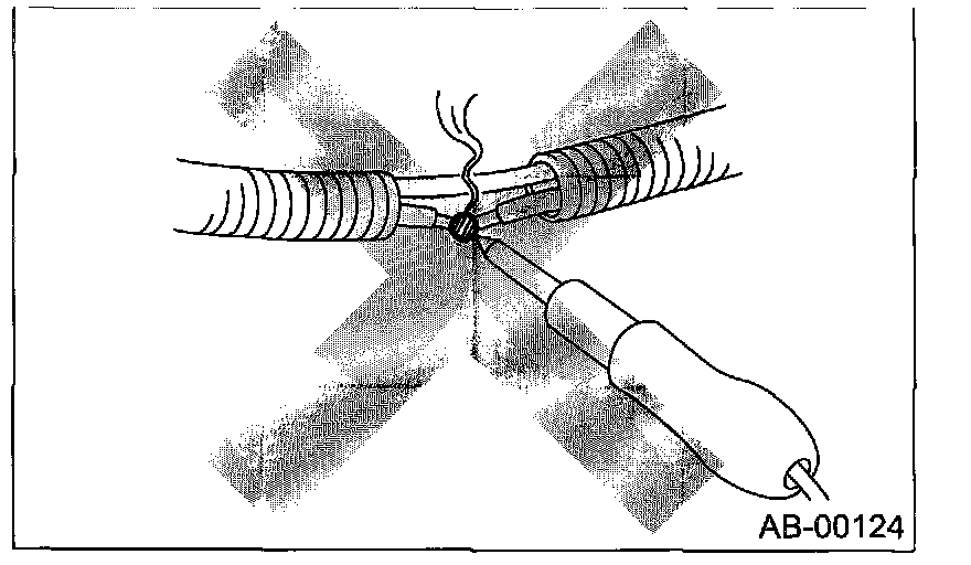 - If damage, open circuit or rust is found on airbag system wire harness, do not use a soldering equipment to repair. Replace the faulty harness with a new genuine part.
