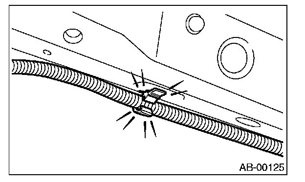 - Install the wire harness securely with the specified clips to avoid interference or tangled with other parts.