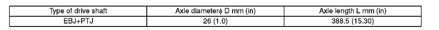 Front Drive Shaft Assembly Dimensions