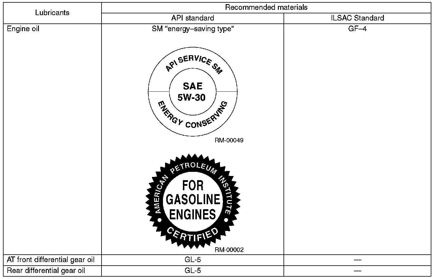 Use either lubricants in the table or equivalent lubricants. See the table to choose the correct SAE viscosity.