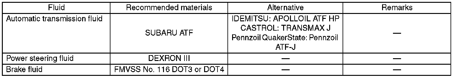 CAUTION: Always use the recommended or equivalent ATF. Using material except recommended one or substitute would cause trouble.