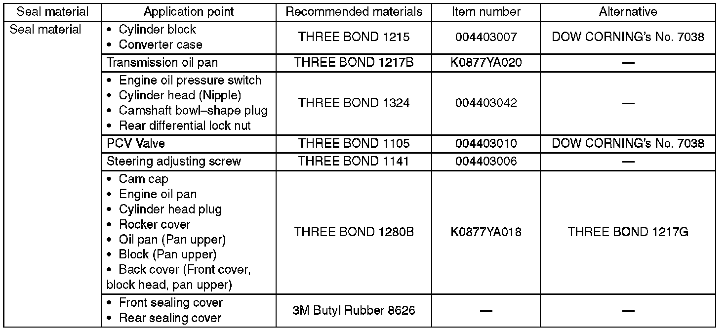 To insure the best performance, always use the specified oil, gasoline, adhesive, sealant, etc. or a substitute of equivalent quality.
