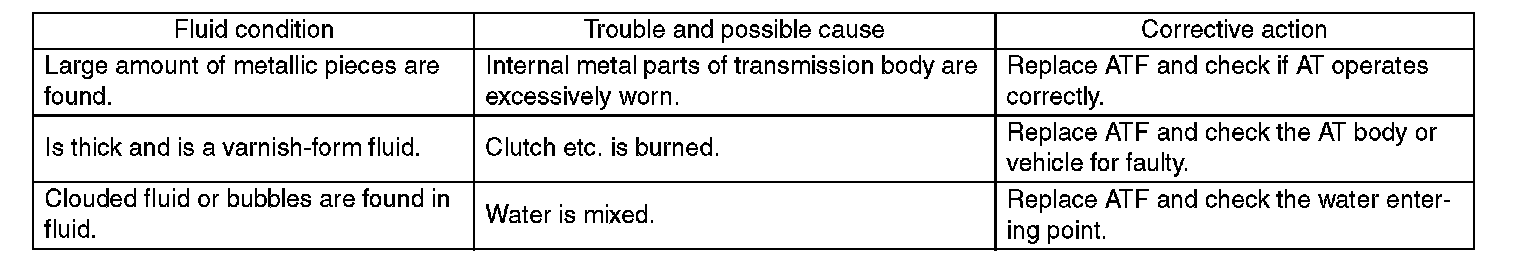 When replacing ATF, check the inside condition of transmission body by inspecting the drained ATF.