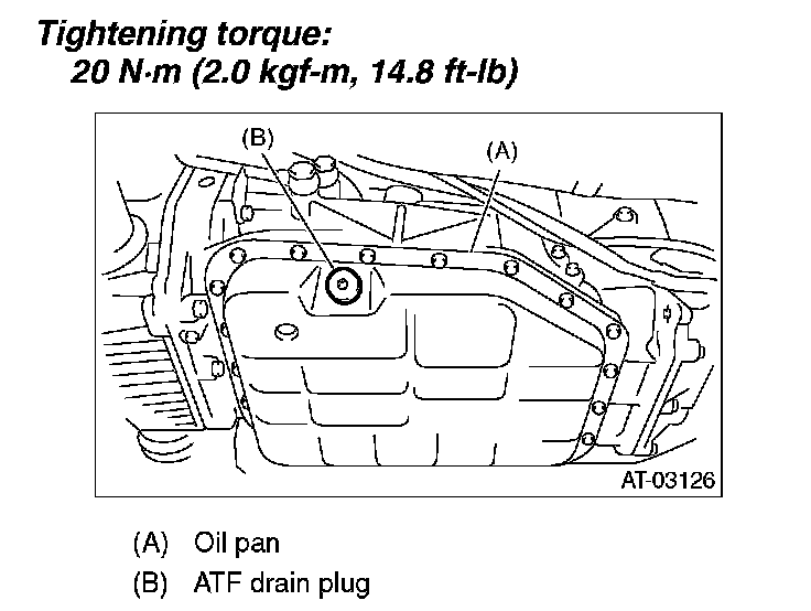 Tightening torque: 20 Nm (2.0 kgf-m, 14.8 ft. lbs.)