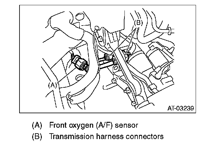 32. Connect the front oxygen (A/F) sensor and transmission harness connector.