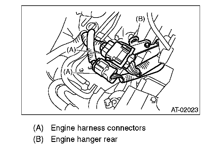 34. Install the engine hanger rear, and then connect the engine harness connector.