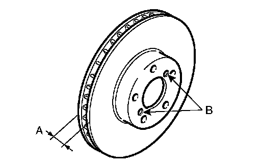 NOTE: If the disc rotor seizes up within the hub, drive the disc rotor out by installing an 8-mm bolt in holes B on disc rotor.