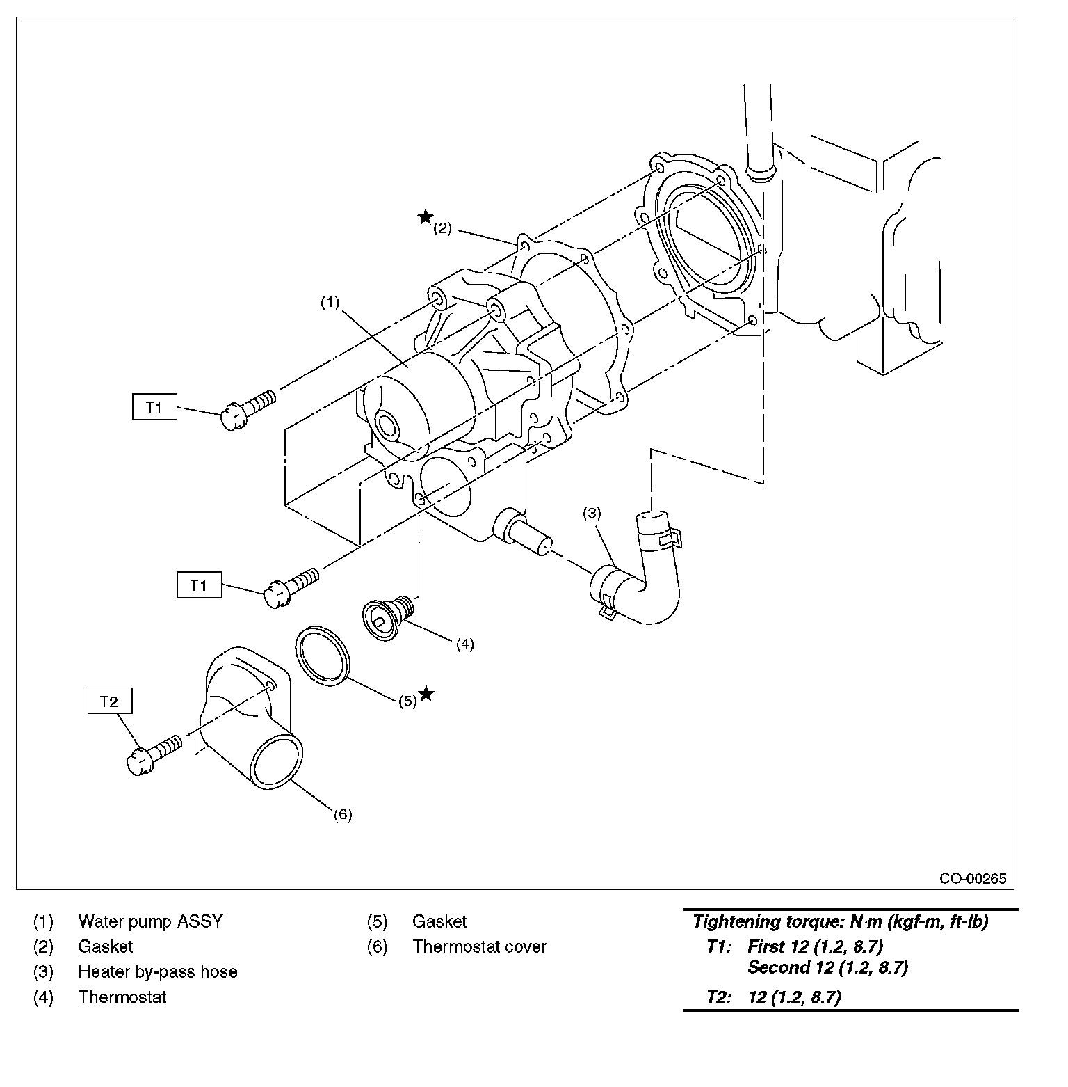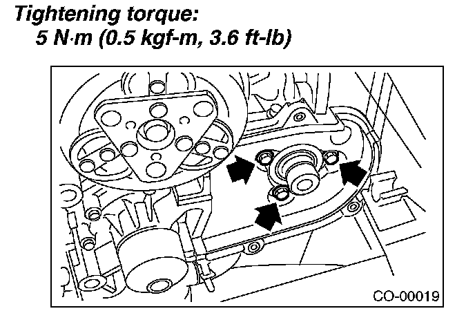 ^ When installing the water pump, tighten the bolts in two stages in alphabetical sequence as shown in the figure.