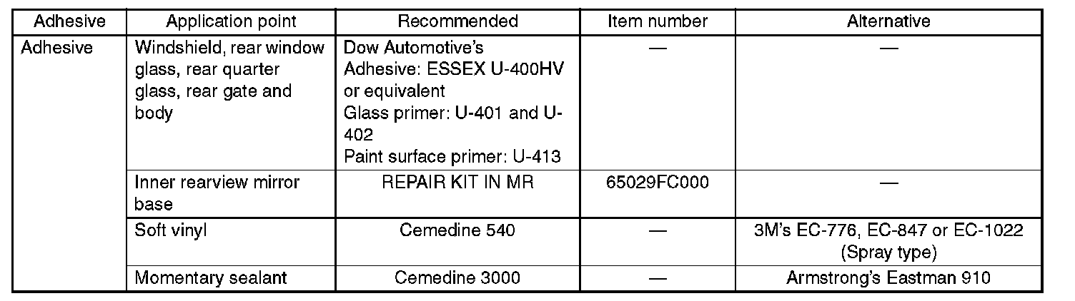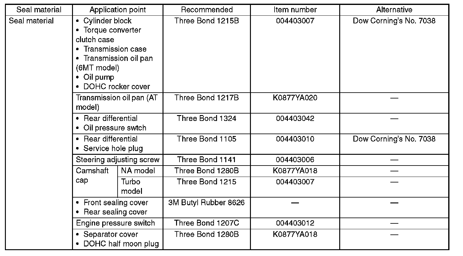 To insure the best performance, always use the specified oil, gasoline, adhesive, sealant, etc. or a substitute of equivalent quality.