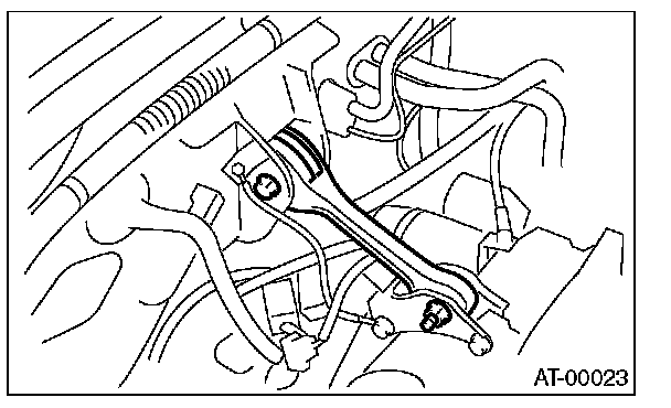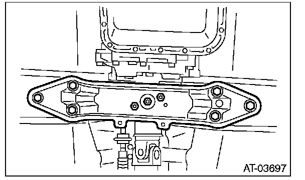 NOTE: Make sure that the support plate of transmission jack does not touch the oil pan.