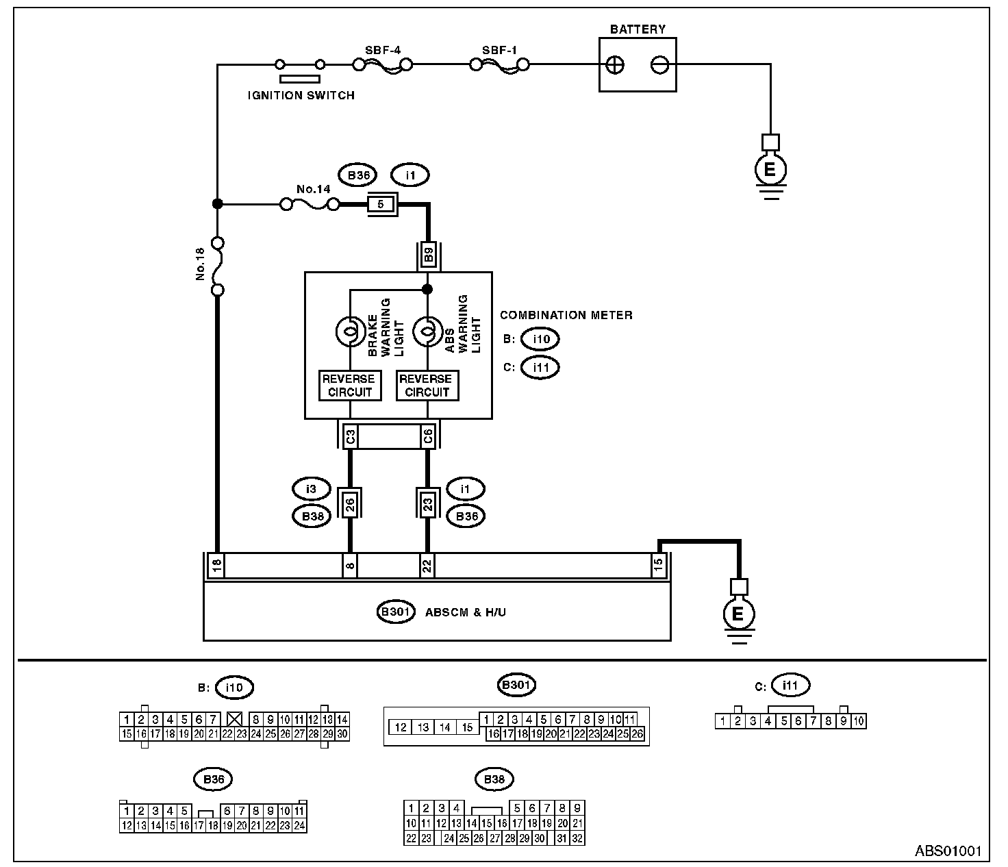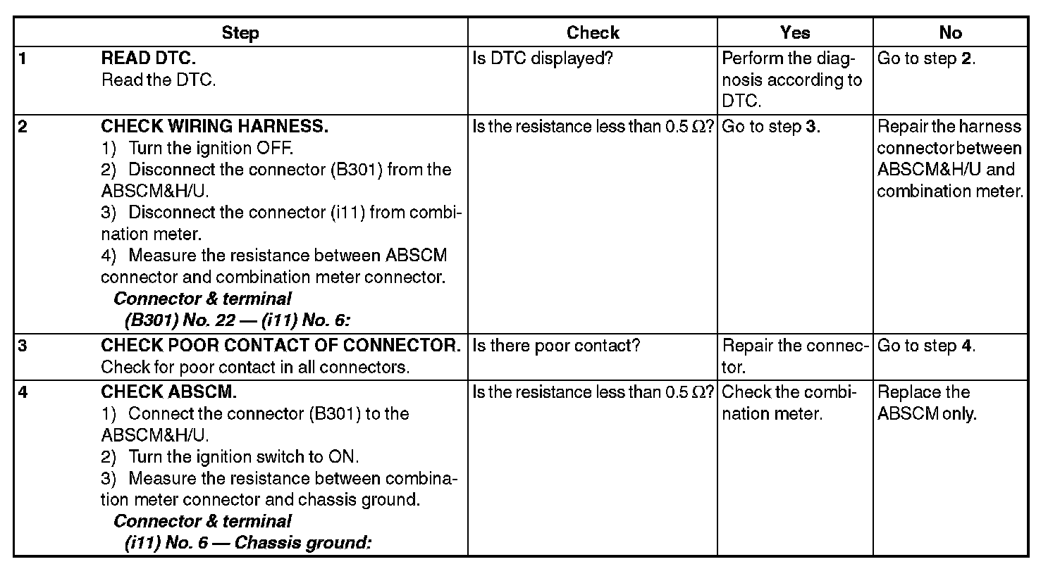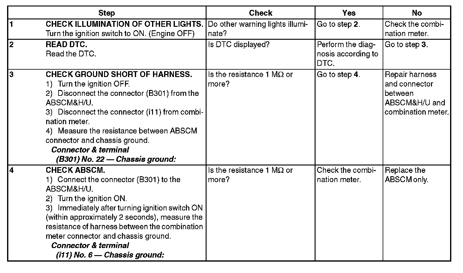 3) When the ABS warning light does not go off, check the combination meter circuit.