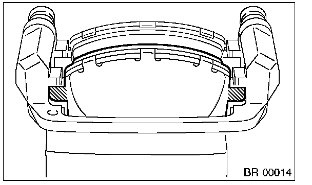 NOTE: The brake hose must not be disconnected from the caliper body.