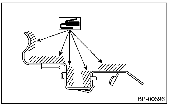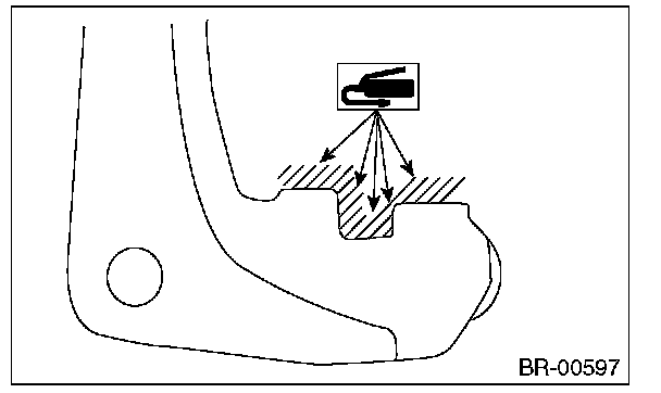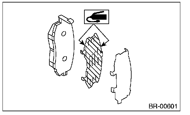 3) Apply a thin coat of Molykote AS880N (Part No. K0777YA010) to the contact surface between pad and pad clip.