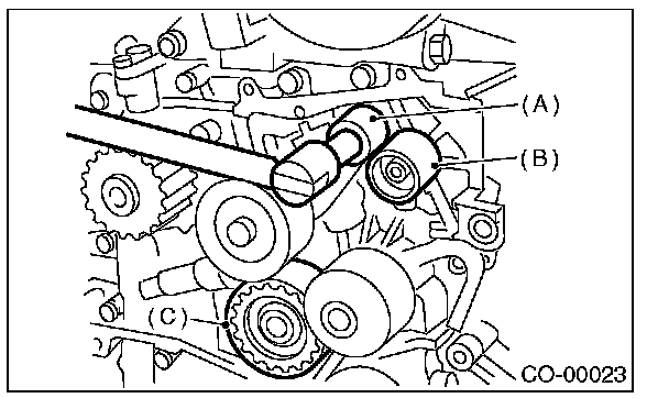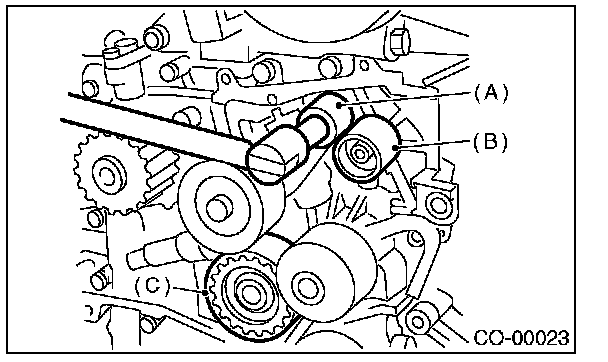 7) Remove the belt idler No. 2 (C).