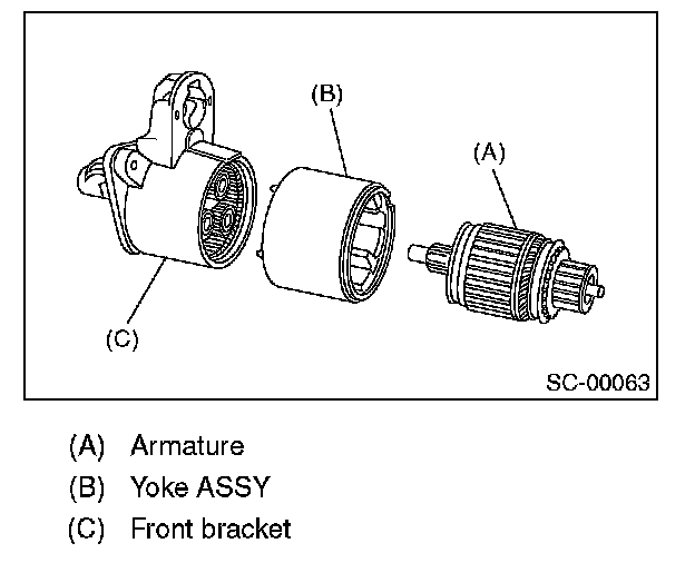 Measure the brush spring force with a spring scale. Replace the brush holder if below the service limit.