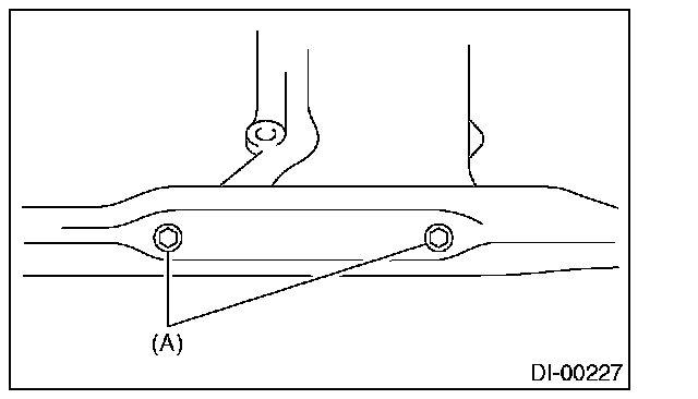 1) Temporarily tighten bolts (A) that secure the front differential member and differential bracket.