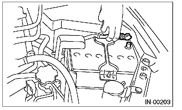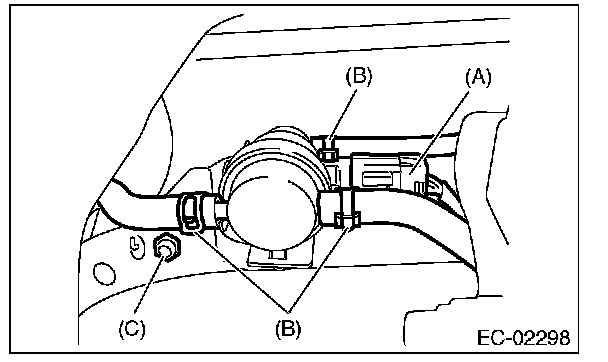 6. Remove the bolts (C) which secure the bracket to the fuel tank.